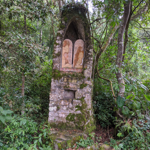 The path quickly changed from brick, to rough stone, to just clearings where people walk most regularly. While the paths were not always easily spotted, there were signs along the way telling you when you probably shouldn't go somewhere and where there are specific points of interest. You could tell by the vegetation that the forest is continually wet, reminiscent of a rain forest, however, the altitude change along the hike showed a variety of plant life.