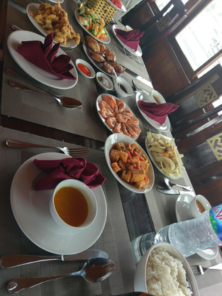 I ended up with a room intended to be shared, so I had to pay a little extra, but that is a typical consequence of a solo traveler. This cruise included all of the food and coffee, tea, juices, etc., but not alcohol - but when has that ever stopped me?! As soon as I could I grabbed a local brew. The crew very quickly prepared us a nice lunch to enjoy as we set off into the misty Ha Long Bay.